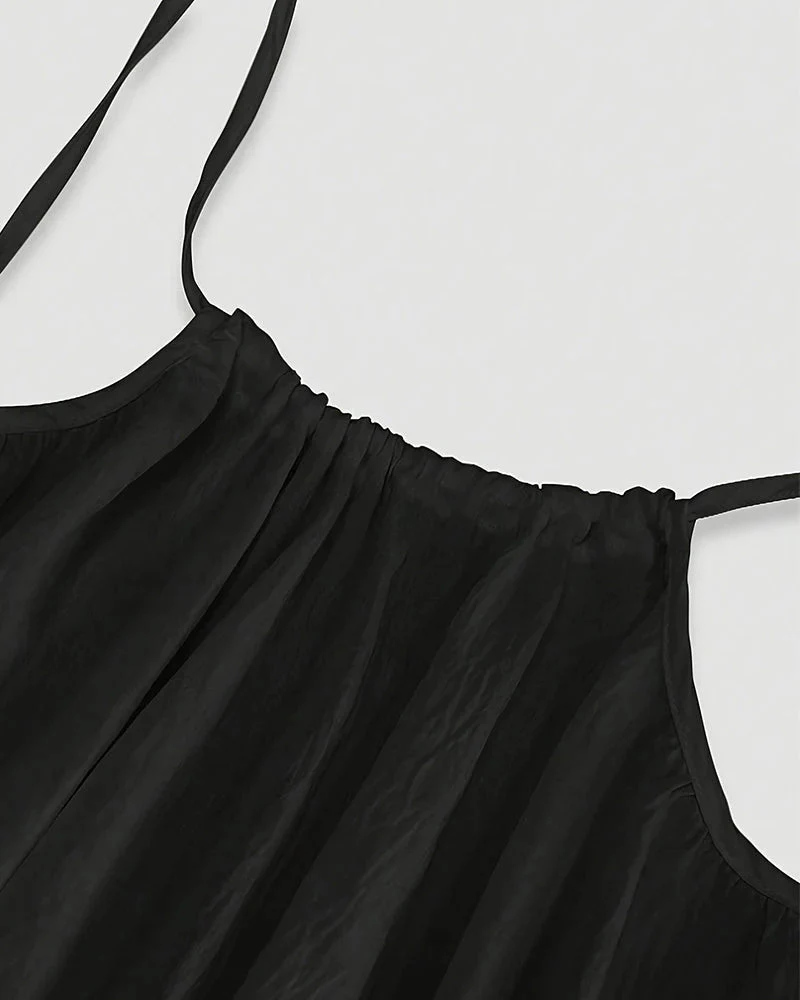 Perfect for holidays, beach walks, or al fresco dinners—easy to pack and effortless to wear. Minimal spaghetti straps create a clean, elegant look while allowing your skin to breathe. The open-back design adds a subtle touch of allure, highlighting your natural beauty with ease.